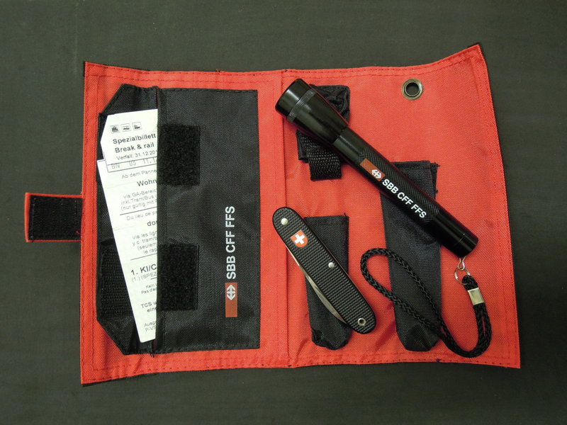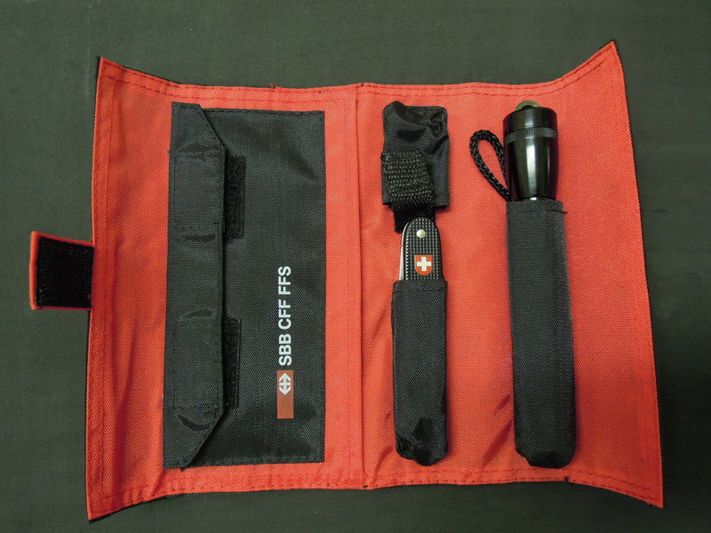 Swiss Railway set consisting of a Soldier like Swiss Army knife and a Maglite flashlight on a roll style carry pouch. Pictures and information by Sneider and duder/el duderino.