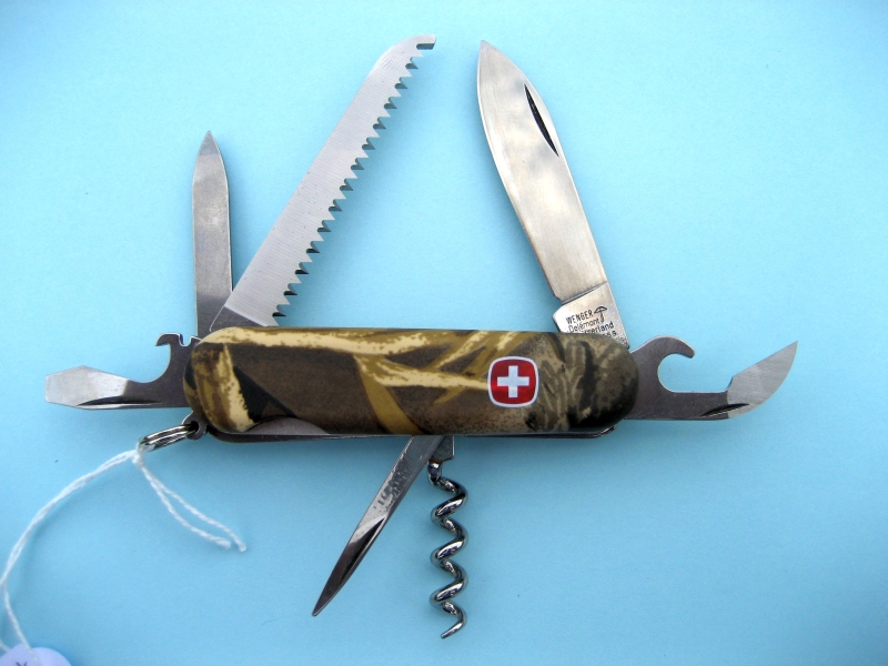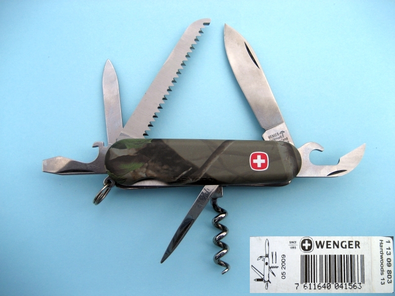 - The Camo 08 was the precursor of the Hardwoods 13 model, and features a different pattern camouflage scales. 'WENGER' is not embossed on the front scale.
