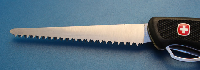 The saw is sometimes supplied with a removable blade-guard, which is a very good feature for this tool, making it much safer, when using the openers or screwdriver. This saw did have a reputation as being one of the best for cutting wood, however tests conducted by Multitool.org members have shown that this may not be the case!