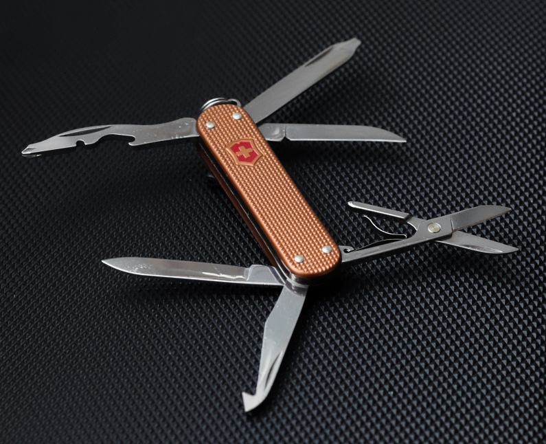 - The Vagabond was reintroduced in December 2012, in a limited quantity Alox edition, exclusively for the dealer Swiss Bianco. This variation was produced with copper anodized handles, as well as the standard silver anodizing. The tools in this version are the same as the regular version, however the tool arrangement differs from the Cellidor version - which, according to SAKWiki 'rules', makes it a three-layer model! - See notes on the two-layer page. It does not include the toothpick and tweezers, in common with Alox scaled models.