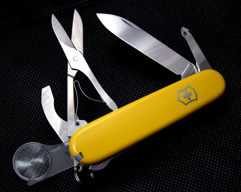 - In 2007 Victorinox made two limited runs for Roger Remund (aka +B or SwissBianco), creating what is known as the +B Yeoman. Run No. 1 (40 pieces) featured red Cellidor Plus scales, Run No. 2 (60 pieces) featured black Cellidor Plus scales. Both runs contained the 2007 version of the magnifying glass and Plus-scales. The original Yeoman had the magnifying glass & Phillips in the top layer, the SwissBianco editions put these tools in the middle layer and moved the scissors to the top layer. The SwissBianco editions also add a nail file/match striker to the back of the multipurpose hook.